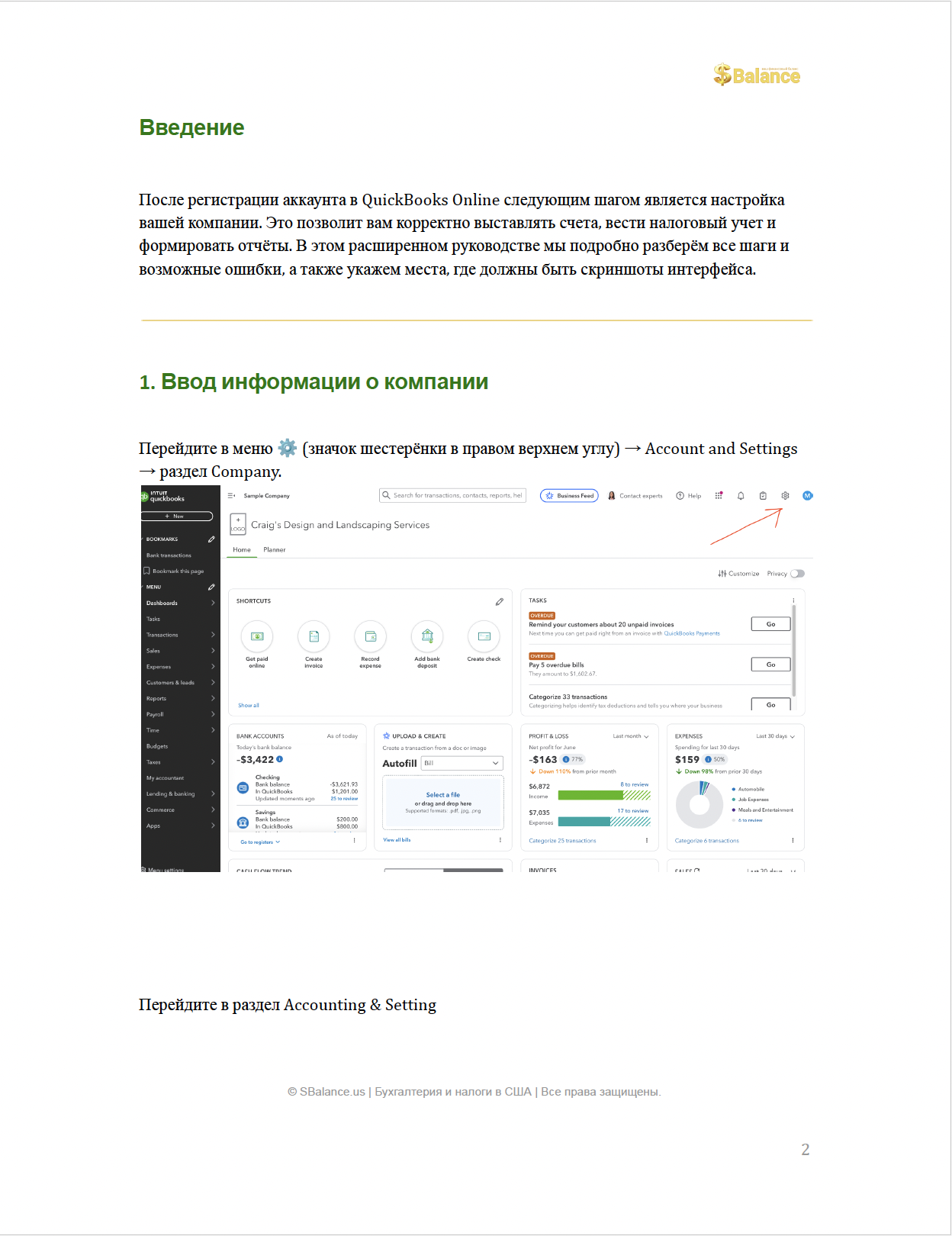 📘 Пошаговая инструкция по настройке компании в QuickBooks Online.